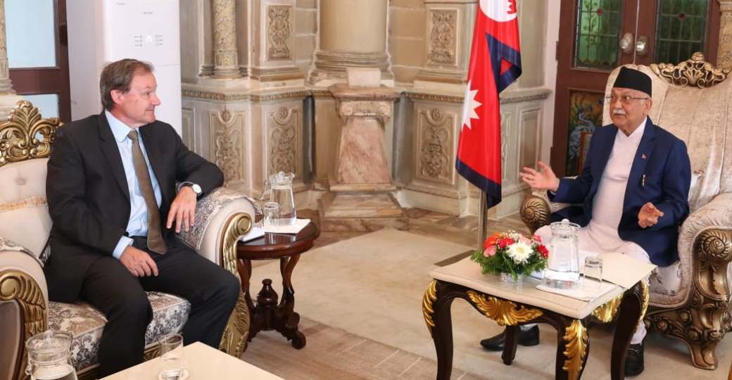 २९ साउन, काठमाडाैं । प्रधानमन्त्री केपी शर्मा ओलीसँग संयुक्त अधिराज्यका राजदूत रब फेनले आज शिष्टाचार भेट गरेका छन् । प्रधानमन्त्री तथा मन्त्रिपरिषद्को कार्यालयमा भएको भेटमा दुई देशबीचको आपसी सम्बन्ध र हितका विषयमा छलफल भएको थियो ।