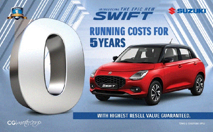 नाडा अटो शोमा सुजुकीले सार्वजनिक गरेको चौथौं संस्करणको नयाँ एपिक स्विफ्ट, इलेक्ट्रिक कारमा जस्तै ५ वर्षको लागि शुन्य रनिङ्ग खर्च हुने गरी अफर पनि ल्याएको छ ।