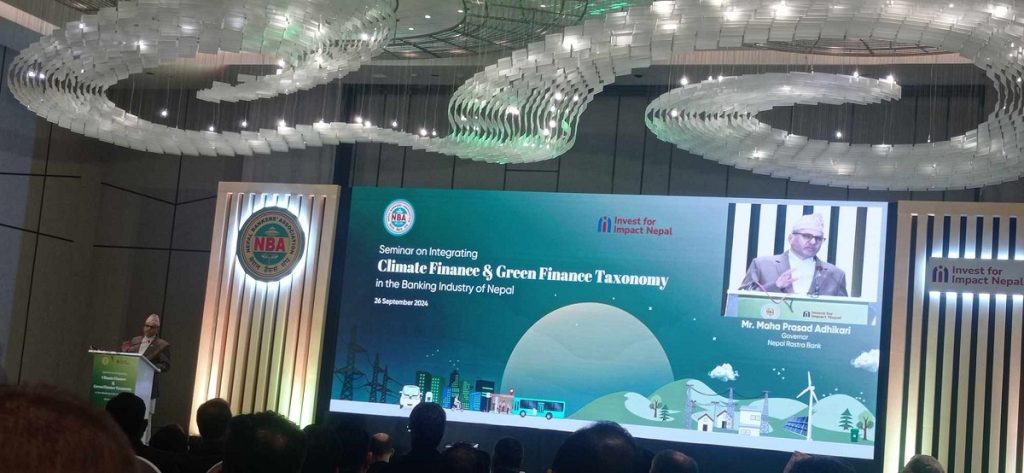 बिहीबार नेपाल बैंकर्स संघ र इम्प्याक्ट फर इन्भेष्ट नेपालले संयुक्त रूपमा आयोजना गरेको नेपालको बैंकिङ क्षेत्रमा क्लाइमेट फाइनान्स र ग्रिन फाइनान्स ट्याक्सनोमी विषयक सेमिनारमा उनले सबै सरोकारवालाले दिगोपन र कार्बन उत्सर्जन कम गर्नलाई प्राथमिकता दिनुपर्ने बताए । जलवायु परिवर्तनका मुद्दाहरूमा बढ्दो चासोले वित्तीय स्रोतको आवश्यकता उजागर गरेको छ, र यसलाई पूरा गर्न निजी क्षेत्र र विकास साझेदारहरूको सहयोग महत्त्वपूर्ण हुने उनले बताए ।