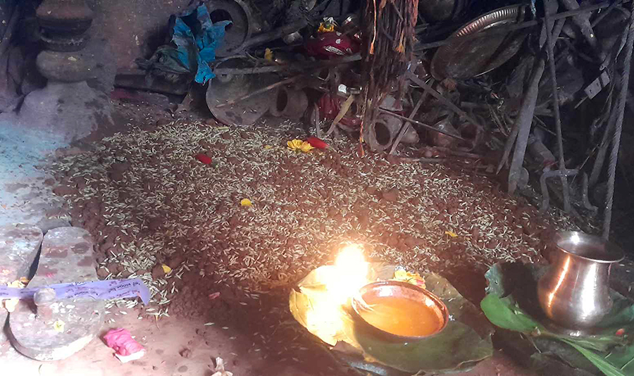 परम्पराअनुसार बिहान सबेरै गोरखकाली मन्दिरको कैलाश कोठाबाट देवी भगवतीलाई मूल दरबारको गर्भगृह (पूजाकोठा) मा पदस्थापना गराइ पानी घडा थापेर जमरा राखिएको उनले बताए ।