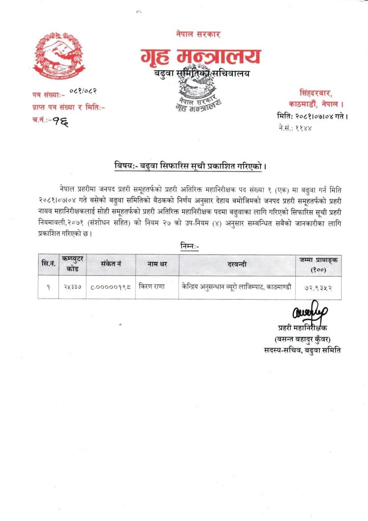 यसअघि पनि शक्ति र सत्ताको नजिक हुनेहरूलाई अवकाशको मुखमा बढुवा दिएर पठाइने गरेको प्रचलन छ । रवि लामिछाने उप प्रधान एवं गृहमन्त्री हुँदा डीआईजी पोषराज पोखरेललाई उनकै जोडबलमा बढुवा सिफारिस गरिएको थियो । तर, नेकपा (एमाले)ले समर्थन फिर्ता लिएका कारण सरकार ढलेपछि पोखरेलको बढुवा सिफारिस मन्त्रिपरिषद्बाट सदर भएन । उनी डीआईजीमै अवकाश भए ।