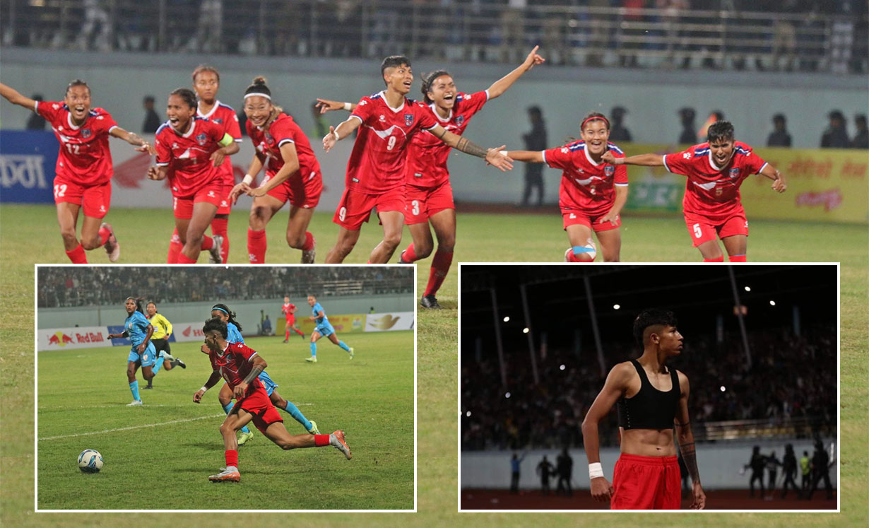 दशरथ रङ्गशालामा आइतबार राति भएको तनावपूर्ण सेमिफाइनल खेलमा भारतलाई टाइब्रेकरमा ४–२ ले हराउँदै नेपाल फाइनलमा प्रवेश गरेको हो । निर्धारित ९० मिनेटको खेल १–१ को बराबरीमा सकिएपछि खेलको निर्णय सोझै टाइब्रेकरबाट गरिएको हो ।