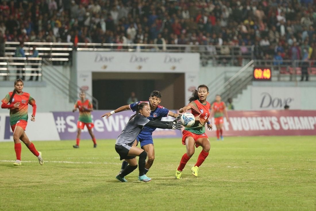 १४ कार्तिक, काठमाडौँ । नेपालले फर्कायो बराबरी गोल । साफ वुमन्स च्याम्पियनसिपमा बंगलादेशविरुद्ध नेपालले गोल फर्काएको हाे । बंगलादेशले गोल गरेको ४ मिनेटपछि नै नेपालकी अमिशा कार्कीले गोल फर्काएकी हुन् ।