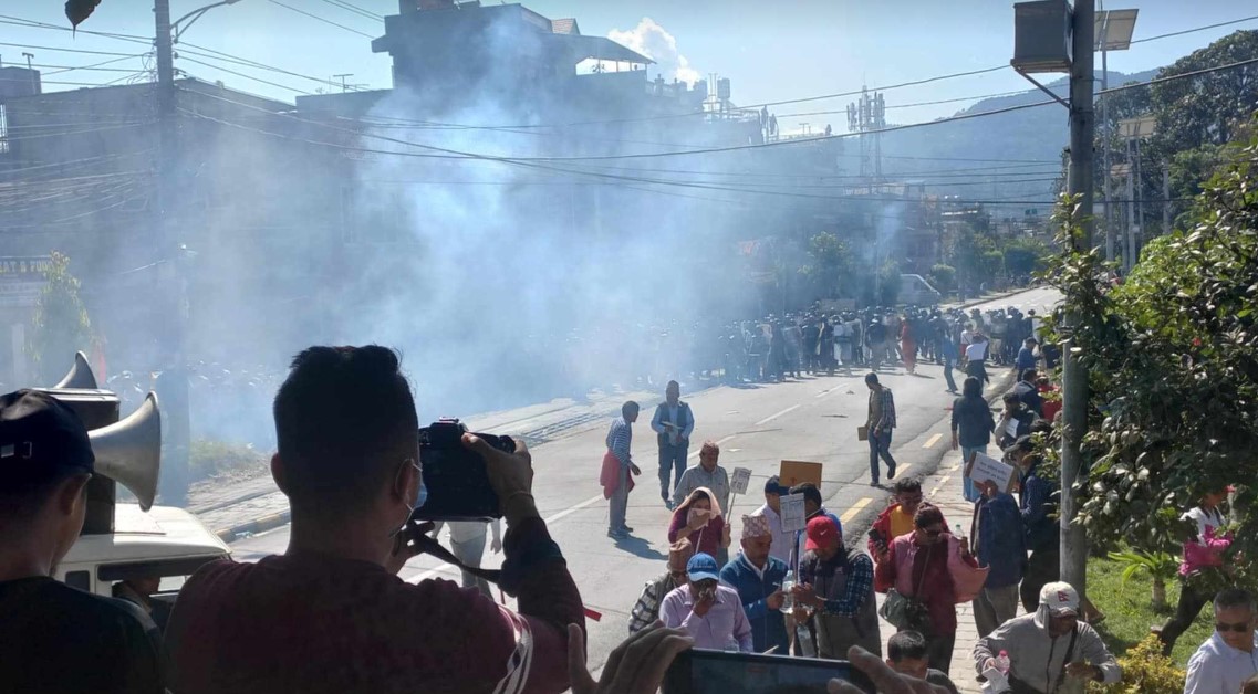 कास्की प्रशासनले निषेधित क्षेत्र घोषणा गरेको ठाउँतिर रास्वपा कार्यकर्ता जान लागेपछि प्रहरीले अश्रुग्यास हानेर उनीहरुलाई अगाडि बढ्न रोकेको हो।