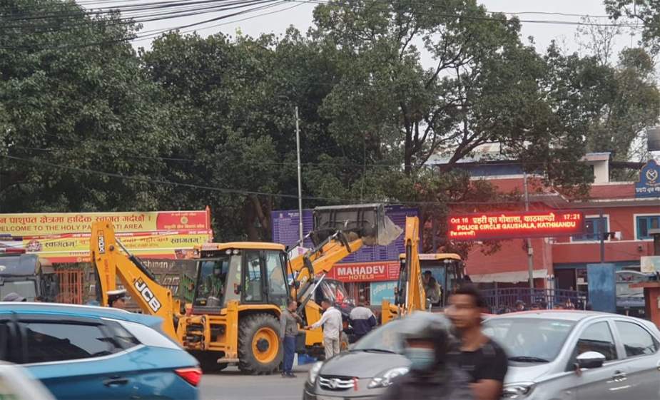 ‘अहिले हामी डोजर सहित गौशाला क्षेत्रमा छौं, यो धर्मशाला बाहेक अन्य क्षेत्रमा सडक मिचेर बनाइएका संरचना भत्काउन आएका हौं । केही बेरदेखि अवरोध भइरहेको छ । अहिले छलफल हुँदैछ,’ ‘अर्यालका अनुसार पक्की र कच्ची गरी १०–१२ वटा संरचना हटाउनुपर्ने छ ।’