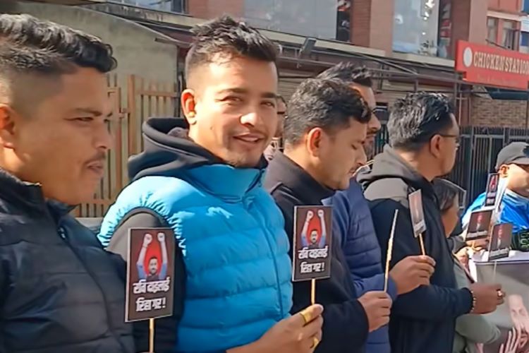 सहकारी ठगी आरोपमा पक्राउ परेका लामिछानेलाई पोखराबाट काठमाडौं ल्याउने तयारी हुँदा रास्वपाका नेता कार्यकर्ताले विरोध गरिरहेका छन् । ‘रवि दाइलाई न्याय दे’ प्लाकार्ड बोकेर उनीहरुले विरोध गरिरहेका छन् ।