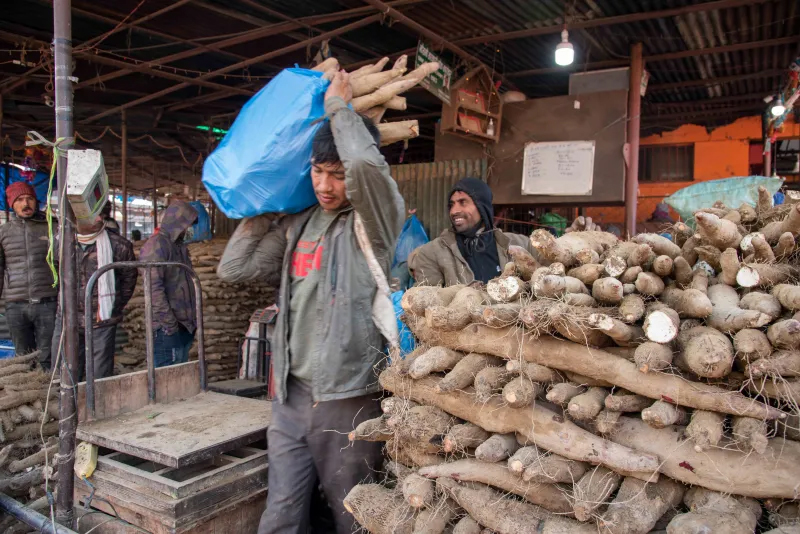 २५ पुष, काठमाडाैँ । माघे सङ्क्रान्ति नजिकिँदै गर्दा कालिमाटीस्थित थोक तरकारी बजारमा अहिले तरुल किन्नेको भिड देख्न सकिन्छ । विशेषत: माघे सङ्क्रान्तिमा खाइने यो कन्दमुलको यो चाडमा माग हुने गर्दछ ।