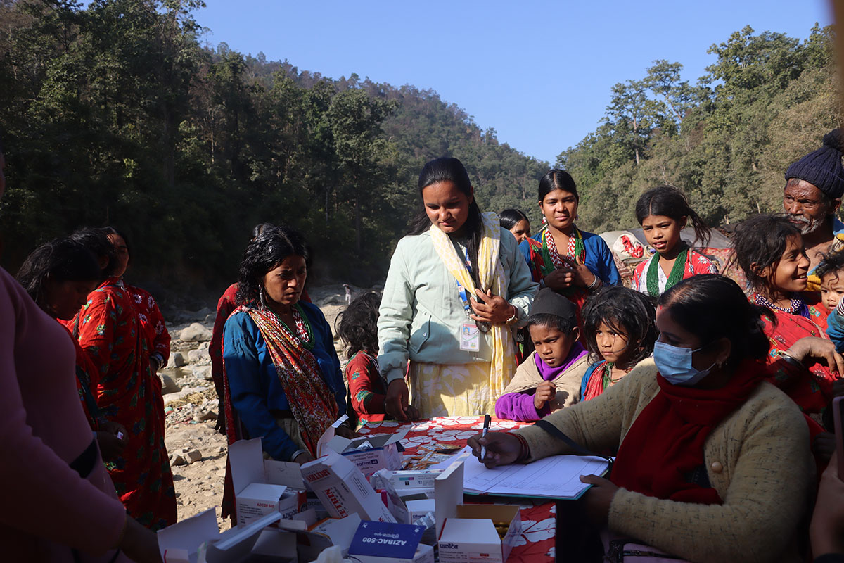 यो शिविर कार्यक्रममा कर्णाली प्रदेश अस्पताल सुर्खेतका सर्जन डा. सुजन सापकोटाको नेतृत्वमा चार विशेषज्ञ चिकित्सकको टोलीले राउटे समुदायमा मौसमी रुघाखोकी, निमोनिया, छाला रोग, ग्यास्ट्रिक, तथा महिलाहरूमा पाठेघर र ढाड दुखाइका समस्या परीक्षण गरी औषधि वितरण गरेको थियो । जुका, भिटामिन, र आइरन चक्की जस्ता औषधिहरू पनि उपलब्ध गराइएको थियो ।