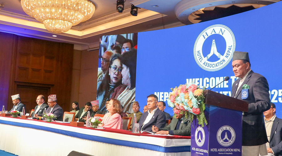 ०३ माघ, काठमाडौं । होटल व्यवसायीहरूको छाता संगठन होटल एसोसिएसन नेपाल (हान) का अध्यक्ष विनायक शाहले मुलुकका होटलहरूले वार्षिक ३५ लाखसम्म पर्यटकलाई सेवा दिन सक्ने भए पनि त्यसको दाँजोमा एक तिहाइमात्र आएको बताएका छन् ।