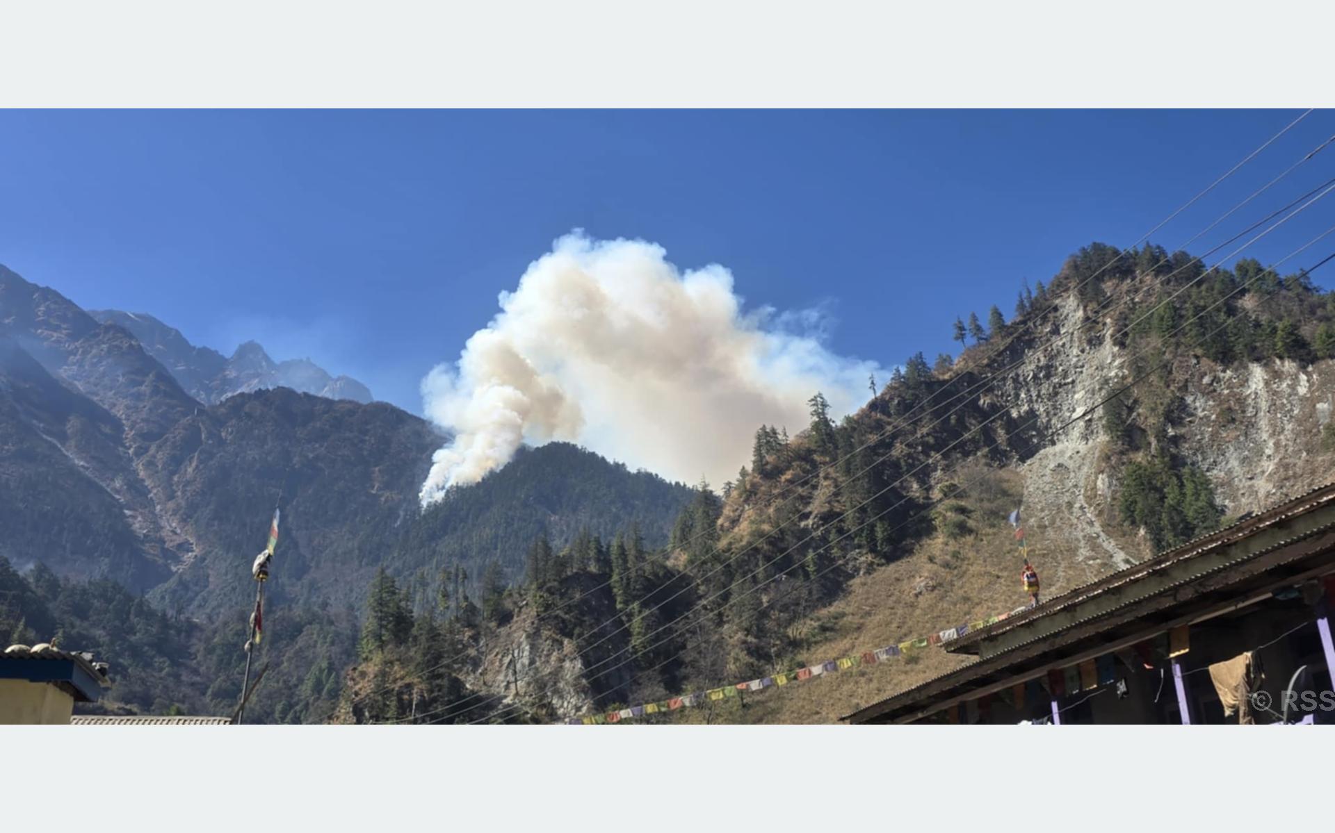 २२ माघ, मनाङ । मनाङमा शुक्रबार बेलुकीदेखि लागेको आगो अझै निभाउन सकिएको छैन । चामे गाउँपालिका–१ स्थित तिमाङ जङ्गलमा शुक्रबारदेखि लागेको आगो सोमबारसम्म पनि नियन्त्रणमा लिन नसकिएको जिल्ला प्रशासन कार्यालयले जनाएको छ ।