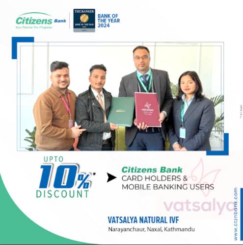 बैंक र वात्सल्य नेचुरल आईभिएफ बीच सिटिजन्स बैंकका ग्राहकहरूलाई विशेष छुट दिने समझदारी पत्रमा हस्ताक्षर गरिएको हो ।