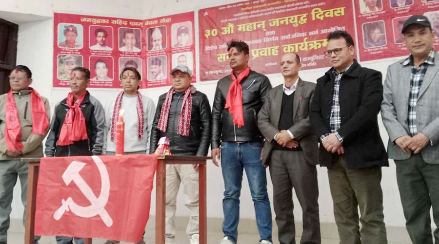 काठमाडौंको बालाजुस्थित औद्योगिक क्षेत्रमा पार्टी महासचिव पूर्णबहादुर सिंह समरजङ्ग को प्रमुख आतिथ्यमा जनयुद्ध दिवस मनाइएको केन्द्रीय सूचना, सञ्चार तथा प्रकाशन विभाग प्रमुख अशोक सुवेदीले जानकारी दिए ।