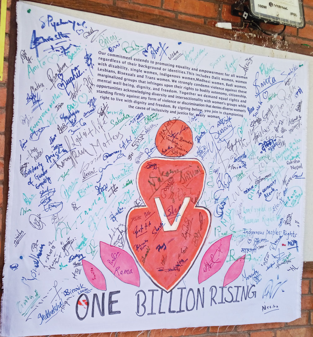 संयुक्त राष्ट्रसङ्घले सन् २०१२ मा हरेक दिन विश्वमा एक करोड महिला, किशोरी विभिन्न किसिमका हिंसामा परिरहेको तथ्याङ्क सार्वजनिक गरेको थियो । सोही वर्षदेखि विश्वभर प्रेम दिवसको दिन विविध सिर्जनात्मक र सांस्कृतिक कार्यक्रमसहित हिंसालाई मायाले जितौँ भन्ने अभियान उर्लंदो सय करोड (राइजिङ विलियन) मनाउन थालिएको थियो । सोही अभियानको निरन्तरता स्वरूप राजधानीमा आयोजित कार्यक्रममा सहभागीहरूले मायाको रुख हुर्काऊँ भन्ने सन्देश दिँदै रङलाई औँलाको टुप्पोमा लगाएर सेतो कपडामा रङ्गीबिरङ्गी रुखका आकारको चित्र बनाएका थिए । साथै हिंसाविरुद्ध हस्ताक्षर पनि सङ्कलन गरिएको थियो ।
