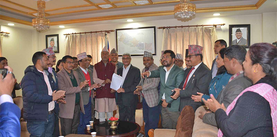 ०४ फागुन, काठमाडौं। संयुक्त राजनीतिक दलित संघर्ष समितिले जातीय विभेद लागायतका विषयमा गृहमन्त्री रमेश लेखकलाई ज्ञापनपत्र बुझाएको छ । आइतबार गृह मन्त्रालय पुगेर समितिका संयोजक लोकबहादुर विश्वकर्माको टोलीले गृहमन्त्री लेखकलाई ज्ञापनपत्र बुझाएको हो ।