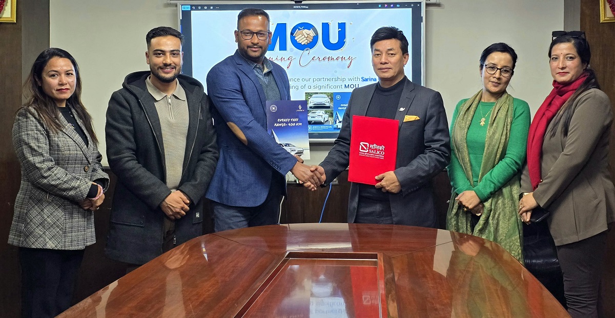०९ फागुन, काठमाडौं । सगरमाथा लुम्बिनी इन्स्योरेन्स कम्पनी लिमिटेड (सलिको) र सरिना जि ट्रेड प्रालिबीच बीमा सेवा सम्बन्धी एक सम्झौता पत्रमा हस्ताक्षर भएको छ । सम्झौतापत्र अनुसार सरिना जि ट्रेडमार्फत विक्री गरिने इभि इजि ट्याक्सीहरुको मोटर बीमा सलिको इन्स्योरेन्सले गर्ने भएको हो ।