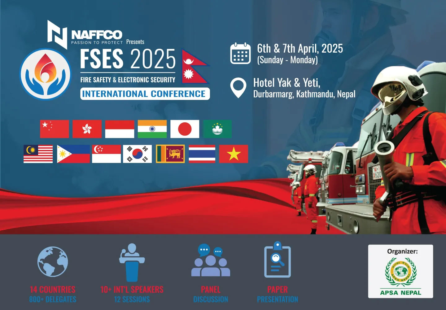एशिया प्यासिफिक सेक्युरिटी एसोसिएसन (आप्सा) नेपालले यहि चैत्र २४ र २५ गते दरबारमार्गस्थित होटल याक एण्ड यतिमा ‘फायर सेफ्टी एन्ड इलेक्ट्रोनिक सेक्युरिटी इन्टरनेशनल कन्फरेन्स २०२५’ आयोजना गर्ने तयारी गरेको छ।