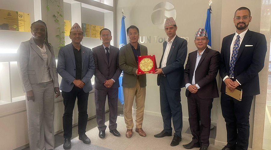 संस्कृति, पर्यटन तथा नागरिक उड्डयन मन्त्रालयका सचिव विनोदप्रकाश सिंहको नेतृत्वमा उच्चस्तरीय नेपाली प्रतिनिधिमण्डलले संयुक्त राष्ट्रसंघ पर्यटन मुख्यालयमा भएको छलफलमा विगतमा गरेको सहयोगप्रति आभार व्यक्त गर्दै प्रविधि, डिजिटल इनोभेसन र दिगो पर्यटन विकासका क्षेत्रमा थप सहकार्यका लागि आग्रह गरेको हो ।