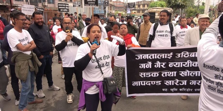 विरोध कार्यक्रममा बोल्दै धोविखोला करिडोर प्रभावित मूल समितिका अध्यक्ष ऋषिराम बस्यालले नदी किनारको २० मिटर क्षेत्र छोड्नुपर्ने फैसला सर्वोच्च अदालतले मनगढन्ते रुपमा गरेको आरोप लगाए ।