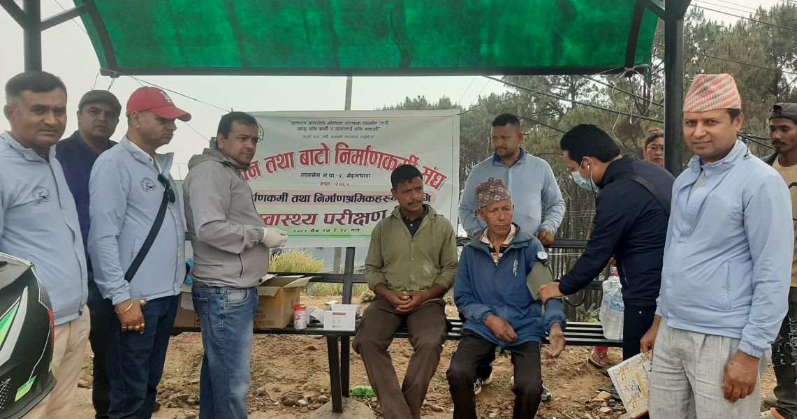 २९ चैत, पाल्पा । जिल्लामा निर्माण क्षेत्रमा काम गर्ने श्रमिकको निःशुल्क स्वास्थ्य परीक्षण गरिएको छ । भवन तथा बाटो निर्माणकर्मी संघ पाल्पाले निर्माण क्षेत्रमा कार्यरत ५५० श्रमिकको शिविरमार्फत स्वास्थ्य परीक्षण गरेको हो ।