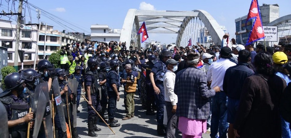प्रदर्शनकारीहरु भने माइतीघरतर्फ गइरहेका छन् । उनीहरुले ‘हाम्रा नेता रिहा गर’, ‘हिन्दु राज्य कायम गर’ लगायतका नारा लगाएका छन् ।