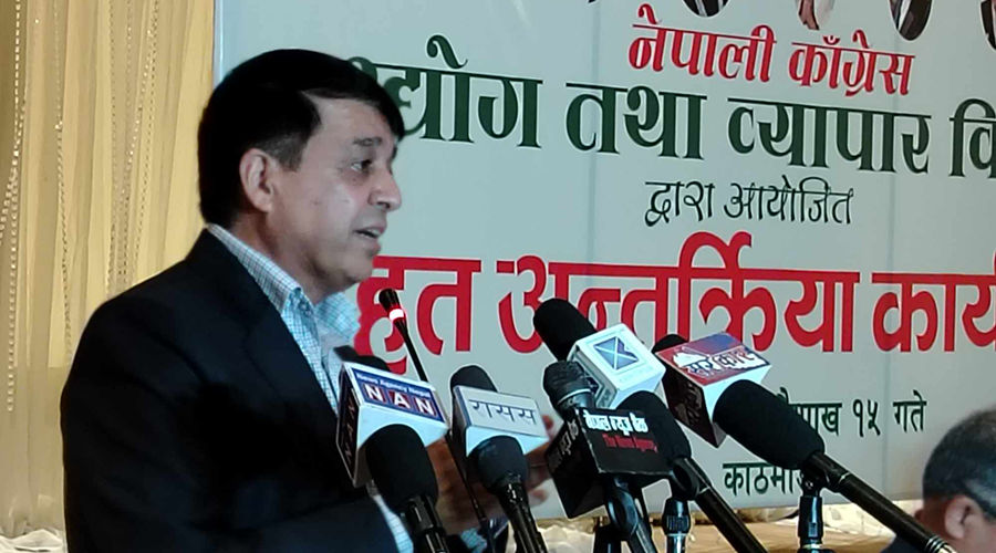 आसन्न बजेटका सन्दर्भमा कांग्रेस पार्टी उद्योग तथा व्यापार विभागले सोमबार काठमाडौंमा आयोजना गरेको अन्तर्क्रियामा महासंघ अध्यक्ष चन्द्रप्रसाद ढकालले संसद्को सबैभन्दा ठूलो राजनीतिक दल कांग्रेसलाई सुझाव बुझाएका हुन् ।