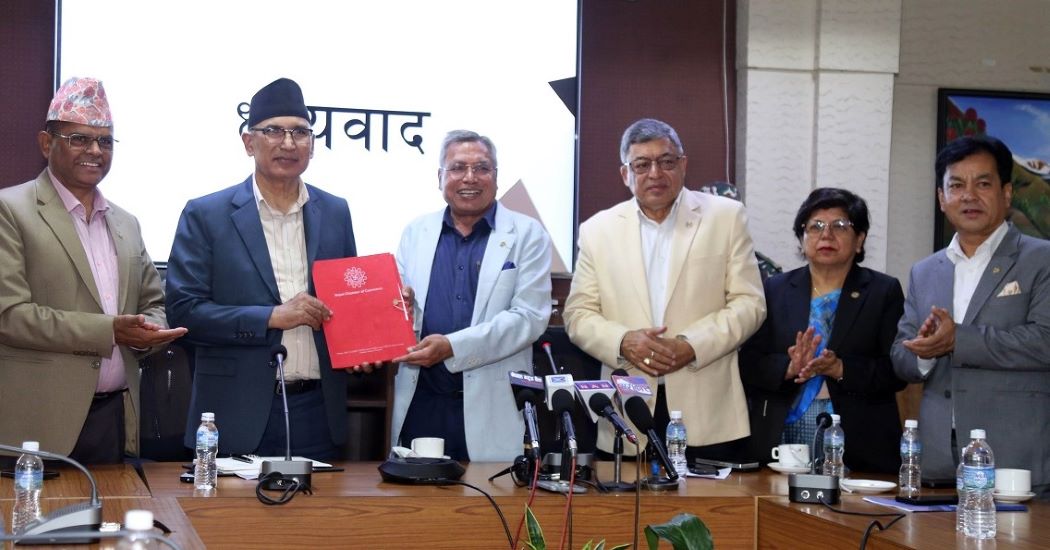 ३० वैशाख, काठमाडौँ । नेपाल चेम्बर अफ कमर्सले वास्तविक कर राजश्वको श्रोत परिचालनबाट एवं प्रतिवद्धता प्राप्त वैदेशिक सहायताका आधारमा यथार्थपरक बजेट ल्याउन सरकारलाई सुझाव दिएको छ । सिंहदरवारस्थित अर्थ मन्त्रालयमा सोमबार उपप्रधान एवं अर्थमन्त्री विष्णुप्रसाद पौडेललाई चेम्बरले आगामी बजेटमा आर्थिक क्षेत्रमा सम्वोधन गर्नुपर्ने १ सय बुँदे सुझाव दिएको हो ।