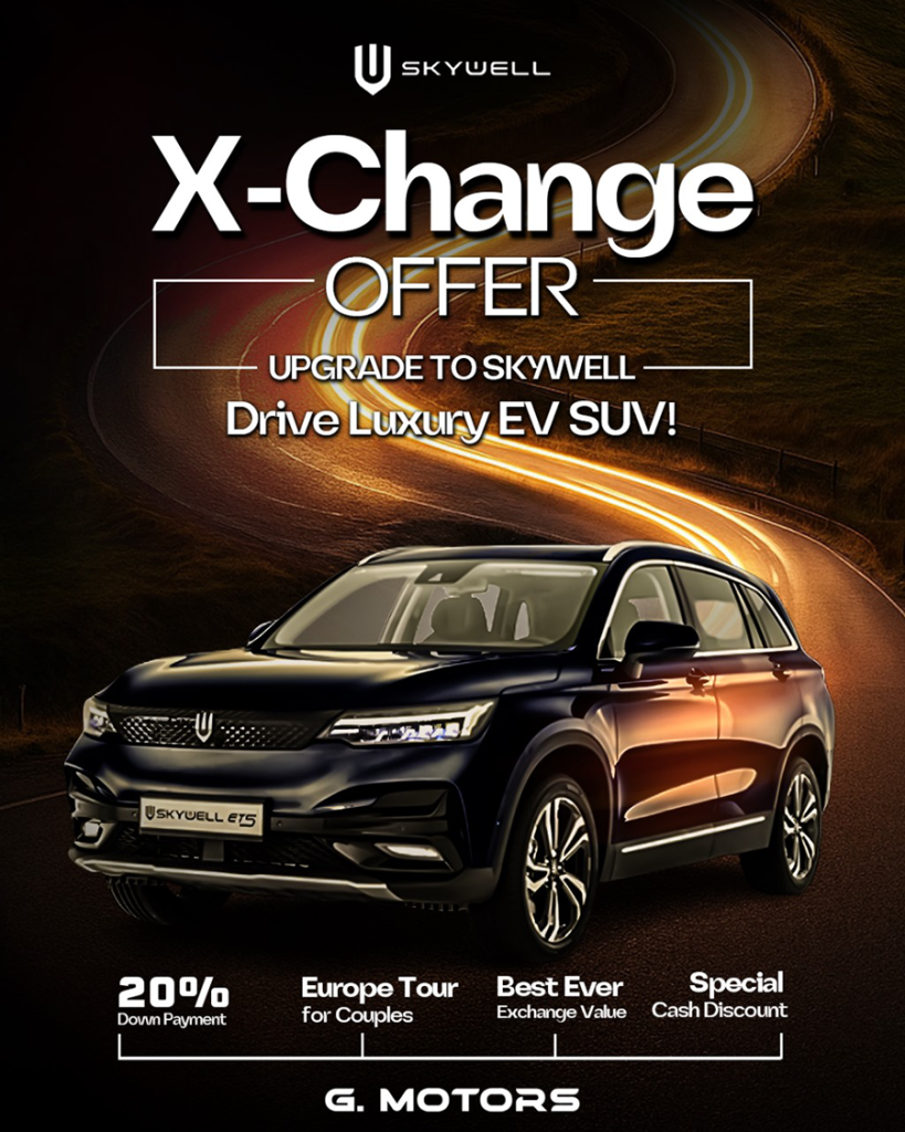 ०४ जेठ, काठमाडौं । स्काइवेलका विद्युतीय सवारी (ईभी) को आधिकारिक वितरक जी मोटर्स प्रालिले ‘स्काइवेल एक्स्चेन्ज अफर : अपग्रेड टु स्काइवेल–ड्राइभ लक्जरी ईभी एसयूभी’ सार्वजनिक गरेको छ ।