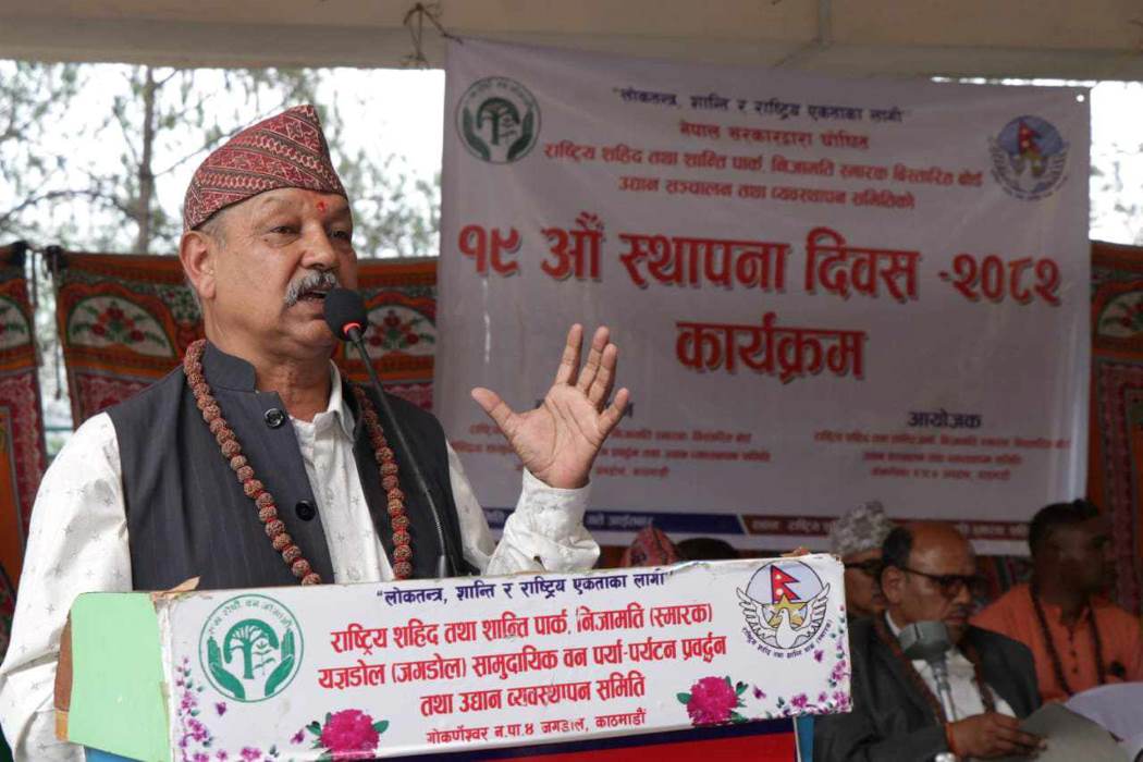 त्यस्तै संविधान सभा सदस्य एवम् बागमती प्रदेशका पूर्वमन्त्री रामेश्वर फुयालले २००७ सालको क्रान्तिपछि मुलुकमा प्रजातन्त्र प्राप्त गर्न आफ्नो ज्यानको बलिदान दिएर व्यवस्था परिवर्तनमा ठूलो योगदान पुर्याएको सम्झना गराउदै राष्ट्र निर्माणमा सबै एक जुट भएर लाग्नुपर्ने बताए । सहिदको सपना पूरा गर्न जनपक्षीय ढंगबाट काम गर्नुपर्ने बताउदै सबै राजनीतिक पार्टीहरु राष्ट्रिय झण्डमुनि बसेर काम गर्न आग्रह गरे । सहिद पार्कलाई साझा सम्पत्तिको रूपमा विकास गरि लोकतन्त्रको रक्षा गर्नुपर्ने बताउदै पूर्वमन्त्री फुयालले सामाजिक तथा राजनीतिक व्यवस्था परिवर्तनमा योगदान पुर्याएका योगमाया र मदन भण्डारीको समेत प्रतिमा समेट्न आग्रह गरे ।