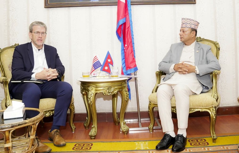 १४ जेठ, काठमाडौँ । ऊर्जा, जलस्रोत तथा सिँचाइमन्त्री दीपक खड्कासँग नेपालका लागि अमेरिकी राजदूत डिन आर थम्पसनबीच भेटवार्ता भएको छ । ऊर्जा मन्त्रालयमा आज भएको भेटमा दुई देशबीचको ऊर्जा सहकार्य र मिलिनियम च्यालेन्ज कर्पोरेशन (एमसिसी) परियोजना कार्यान्वयनका विभिन्न पक्षमा छलफल भएको थियो ।