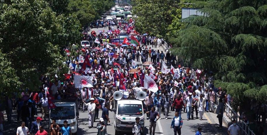 भृकुटिमण्डपमा आयोजना हुने सभाका लागि अहिले रत्नपार्क हुँदै र्याली त्यसतर्फ गइरहेको छ ।