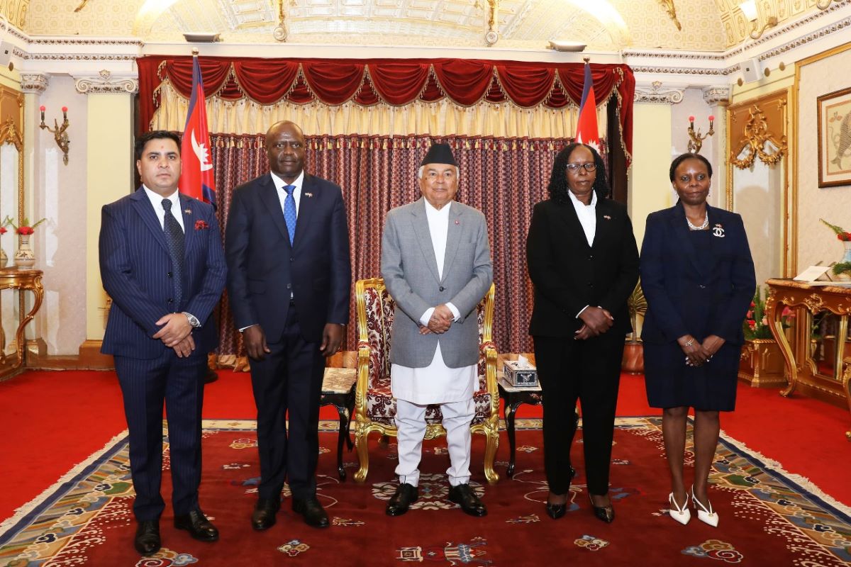 २१ जेठ, काठमाडौँ । केन्याका राजदूत उच्च्युक्त पिटर मैना मून्यीरीले नेपालका लागि गणतन्त्र केन्याका अवैतनिक वाणिज्यदूत चन्द्र टण्डनको उपस्थितीमा गत सोमबार राष्ट्रपति कार्यालय शितल निवासमा नेपालका राष्ट्रपति राम चन्द्र पौडेललाई आफ्नो ओहोदाको प्रमाण पत्र प्रस्तुत गरेका छन् ।
