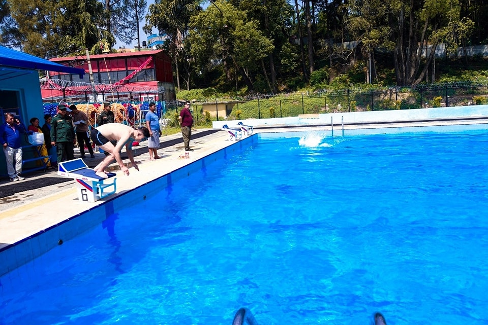१८ लाख लिटर पानी भएको पोखरीको लम्बाइ ५० मिटर र चौडाइ १८ मिटर छ । गहिराइ ३ फिटदेखि १० फिटसम्म छ । पोखरीको पानी शुद्ध बनाउन पानी प्रशोधन प्लान्ट छ । पानीको पिएच भ्यालु र क्लोरिन भ्यालुको सन्तुलन गर्न स्वचालित डिजिटल प्रणाली छ । स्नान घर, शौचालय र लकर सुविधा उपलब्ध गराइएको छ । पोखरीको छेउमा १५० जना दर्शक बस्ने क्षमताको ठाउँ छ ।