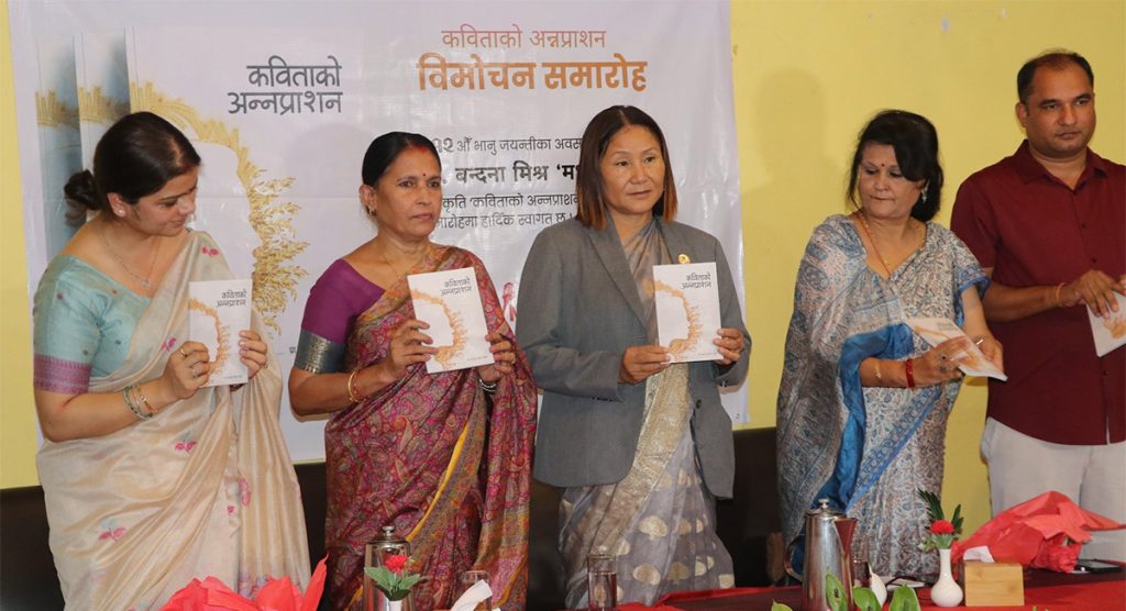 ३० असार, काठमाडाैं। प्राध्यापक वन्दना मिश्र ‘मधु’को कविता सङ्ग्रह ‘कविताको अन्नप्राशन’को विमोचन गरिएको छ । आइतबार काठमाडौंमा आयोजित एक समारोहमा कविता सङ्ग्रह विमोचन गरिएको हो ।