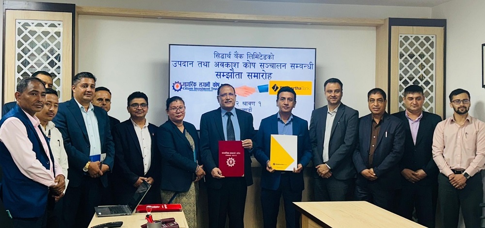 ०७ साउन, काठमाडाैं । नागरिक लगानी कोष र सिद्धार्थ बैंक लिमिटेडबीच उपदान तथा अवकाश कोष सञ्चालनसम्बन्धी सम्झौतामा हस्ताक्षर भएको छ ।