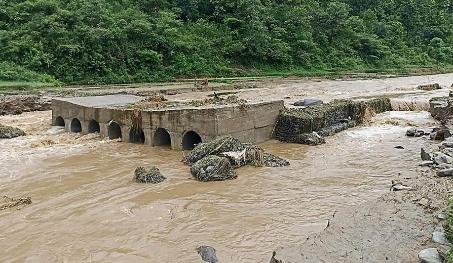 १७ साउन, रामेछाप । सदरमुकाम मन्थलीलाई खाँडादेवी, दोरम्बा शैलुङ र सुनापति गाउँपालिकासँग जोड्ने तथा काठमाडौँ जाने वैकल्पिक मार्गका रूपमा रहेको भटौली खोलाको पक्की पुलमा बाढीले क्षति पुर्याएको छ । कटानका कारण ठूला सवारीसाधनको आवागमन रोकिएपछि नेपाली सेना र सशस्त्र प्रहरी बाटो खुलाउन लागिपरेका छन् ।