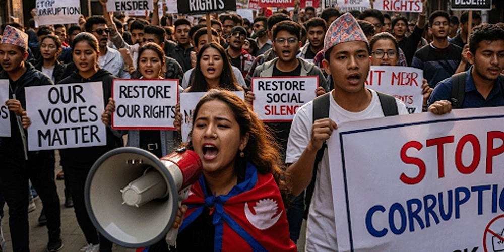 सरकारले नेपालमा दर्ता नभएका फेसबुकसहितका सामाजिक सञ्जाललाई निस्क्रिय बनाएपछि आक्रोशिन बनेको जेनजी पुस्ता ‘भ्रष्टाचारलगायत देशमा व्याप्त सम्पूर्ण बेथिति विरुद्ध’ भन्दै प्रदर्शनमा उत्रन लागेको हो ।