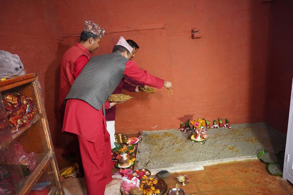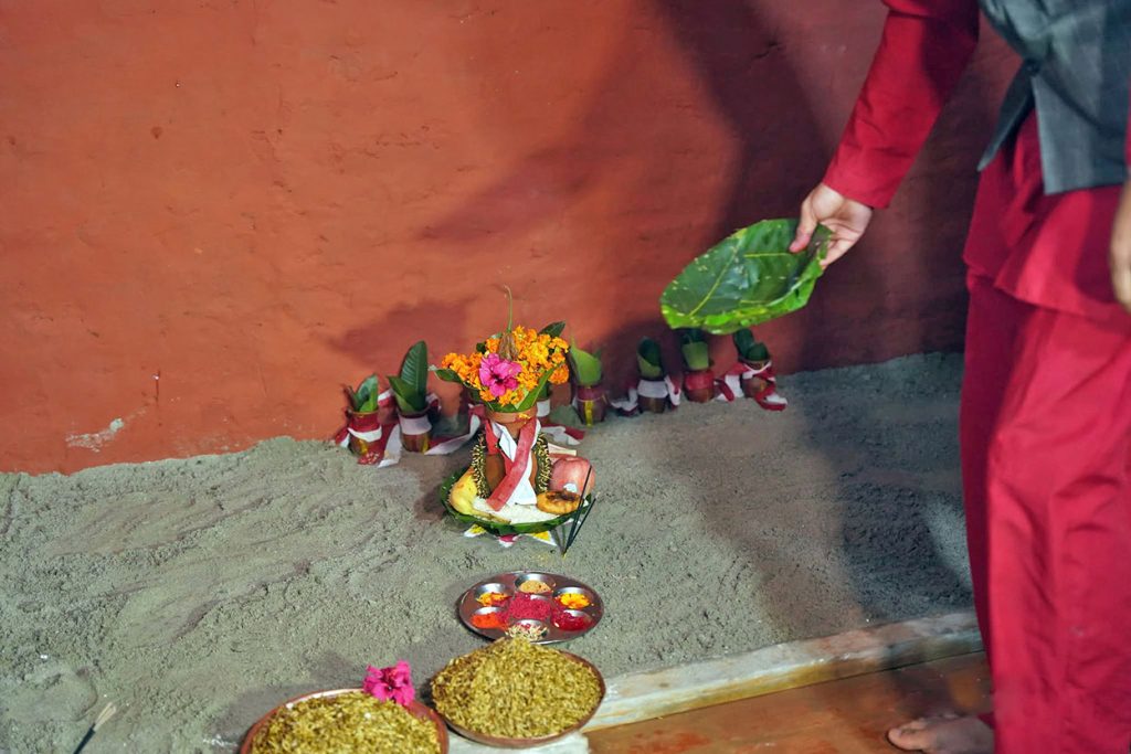 घटस्थापना गरिएको स्थानमा दुर्गा देवीका तीनवटा रुप महाकाली, महालक्ष्मी र महासरस्वतीको नवरात्रभर विधिपूर्वक आह्वान गरी पूजा गरिन्छ ।
