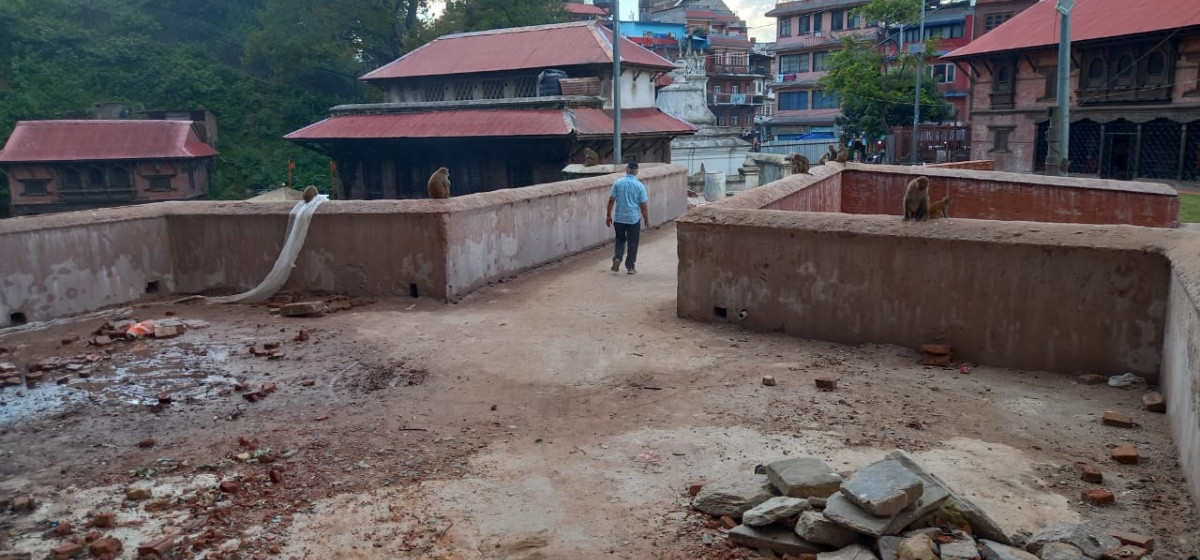 २२ असाेज, काठमाडौँ । पशुपति क्षेत्रस्थित गौरीघाटदेखि गुह्येश्वरी मन्दिर जाने पुल करिब एक वर्षपछि निर्माण भएको छ। पुल निर्माणमा आधुनिक निर्माण सामग्री प्रयोग गर्न खोजेपछि पुरातत्व विभागले रोकेर अलपत्र परेको सम्बन्धी राससमा समाचार प्रकाशित भएपछि अलपत्र पुल निर्माण सम्पन्न भएको छ।