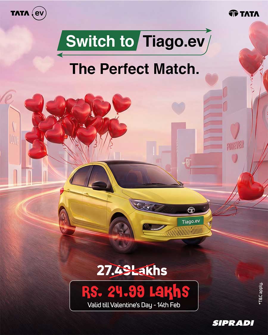 कम्पनीले यसअघि २७.४९ लाख रुपैयाँ बजार मूल्य रहेको टियागो इभीलाई भ्यालेन्टाइन डे अफर अन्तर्गत सीमित अवधिका लागि मात्र २४.९९ लाख रुपैयाँ कायम गरेको छ। यो सबै नयाँ टियागो इभिमा लागु हुनेछ।