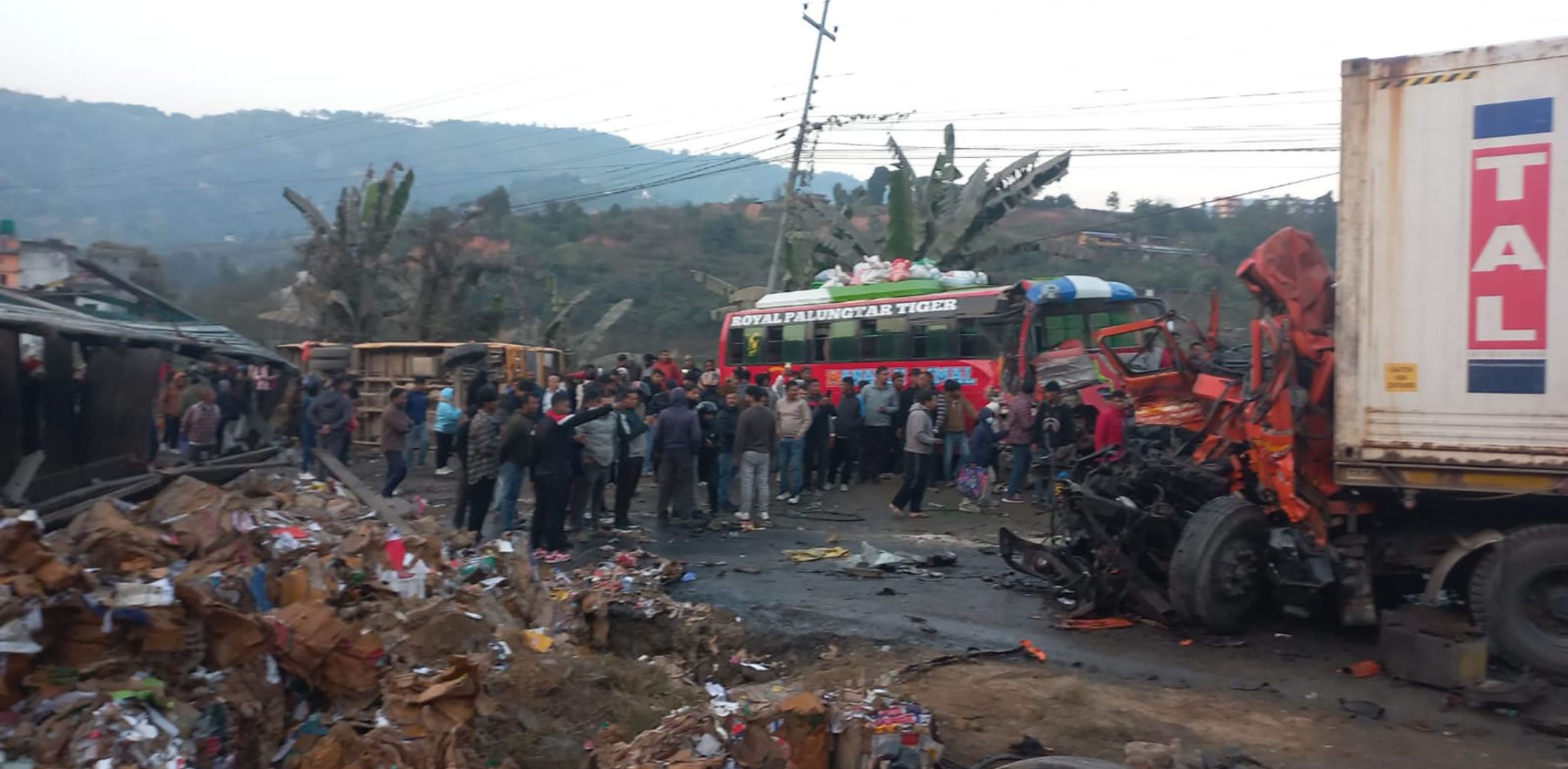 धादिङमा सात वटा गाडी ठोक्किँदा २ जनाको मृत्यु, ३३ घाइते