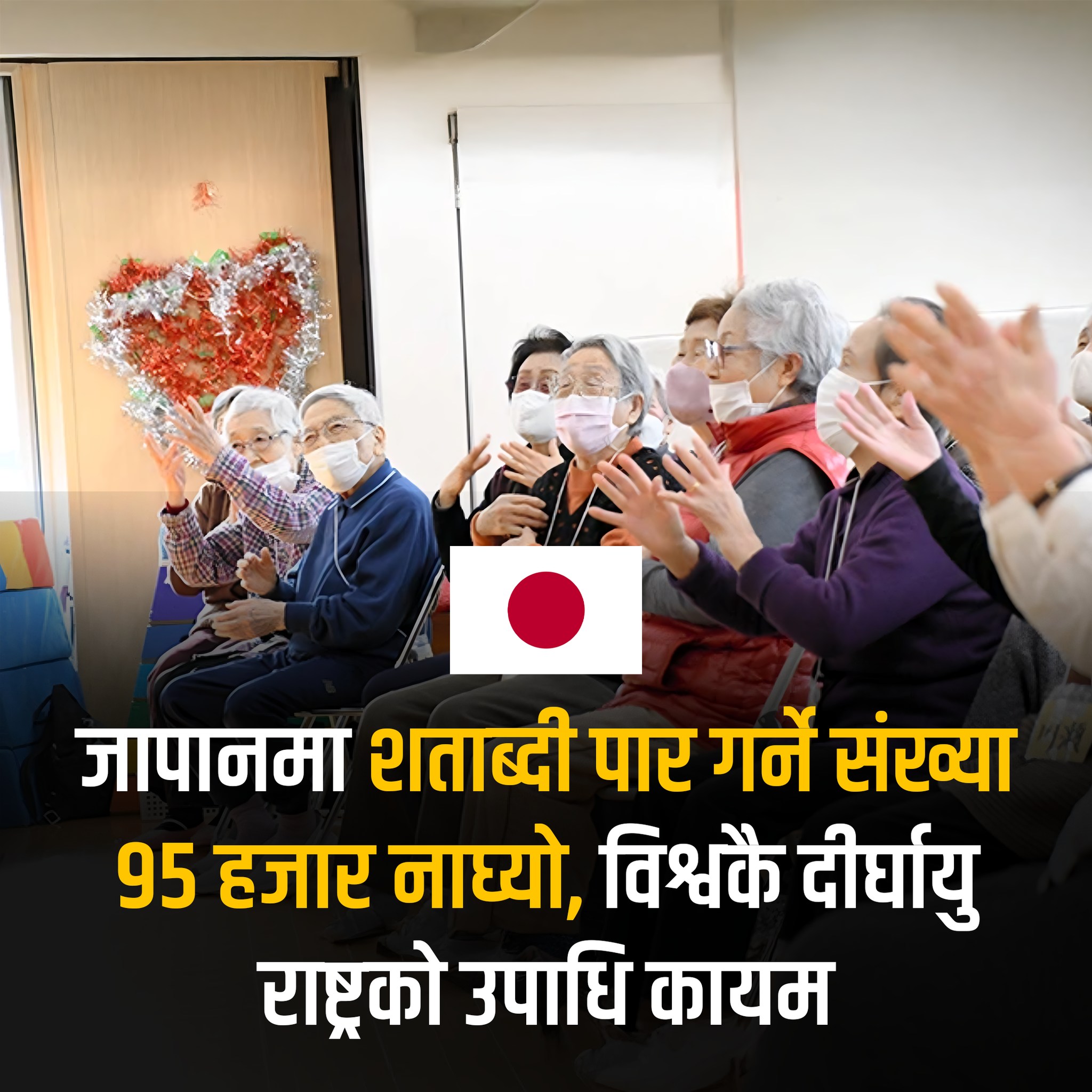जापानमा शताब्दी पार गर्ने संख्या ९५ हजार नाघ्याे, विश्वकै दीर्घायु राष्ट्रकाे उपाधि कायम