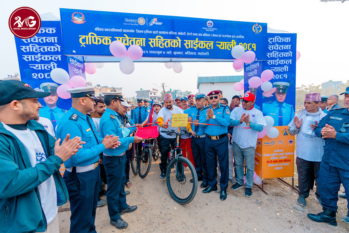 ७५ औं प्रजातन्त्र दिवसको अवसरमा ट्राफिक सचेतना सहितको साइकल र्याली सम्पन्न